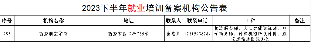 近日,西安市人力资源和社会保障局发布《西安市2023年下半年就业创业失业培训备案机构及职业工种信息公告》,pg娱乐成功获批西安市就业、创业、失业培训机构。今后pg娱乐可开展创业培训和物流服务师、人工智能训练师、电子商务师、计算机程序设计员、航空运输地面服务员等6个工种的就业失业培训,为pg娱乐应届毕业生提供优质的职业技能培训服务,提升应届毕业生就业质量。